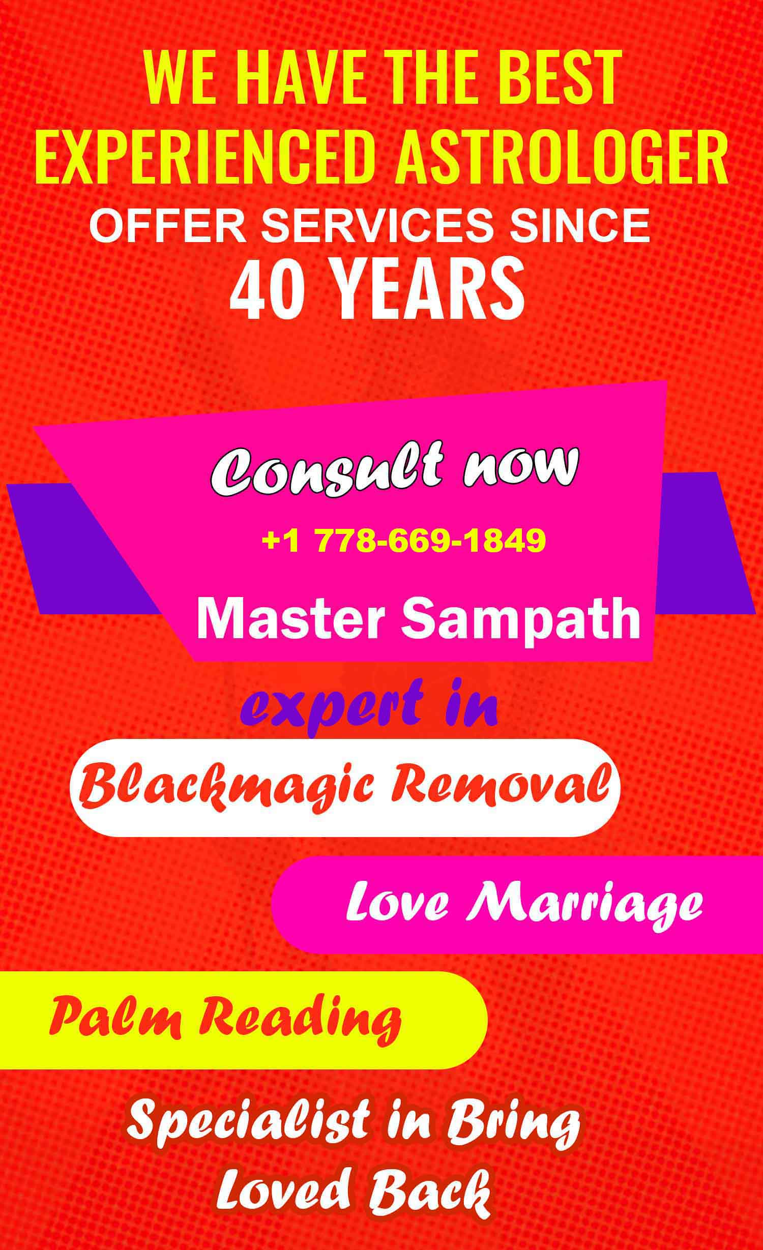 **Choose Master Sampath People choose Astrologer Sampath to get betterment and to solve the problems face in their life. He will give the best advice to select the best path of life. He helps you to overcome all defects and to get the positive results. Many customers are getting good services from his astrological kn TO MAKE APPOINTMENT CALL HIM ON +1 778-669-1849 OR SEND Mail